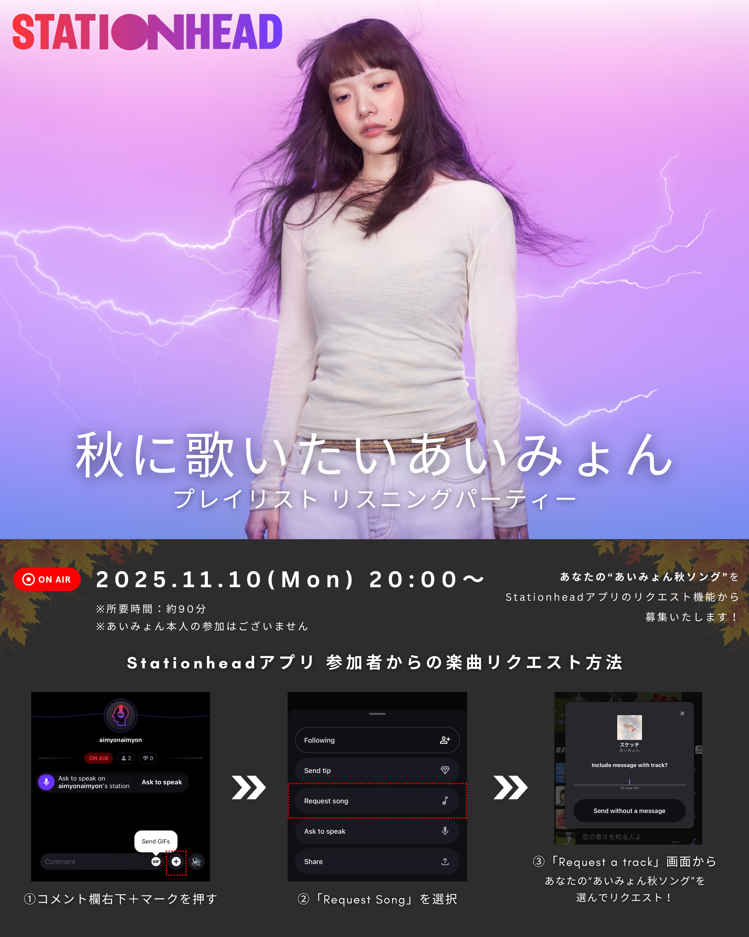 ※開催までに「Stationhead」アプリをダウンロード頂き、アカウントを作成の上で「aimyonofficial」をフォローください。
